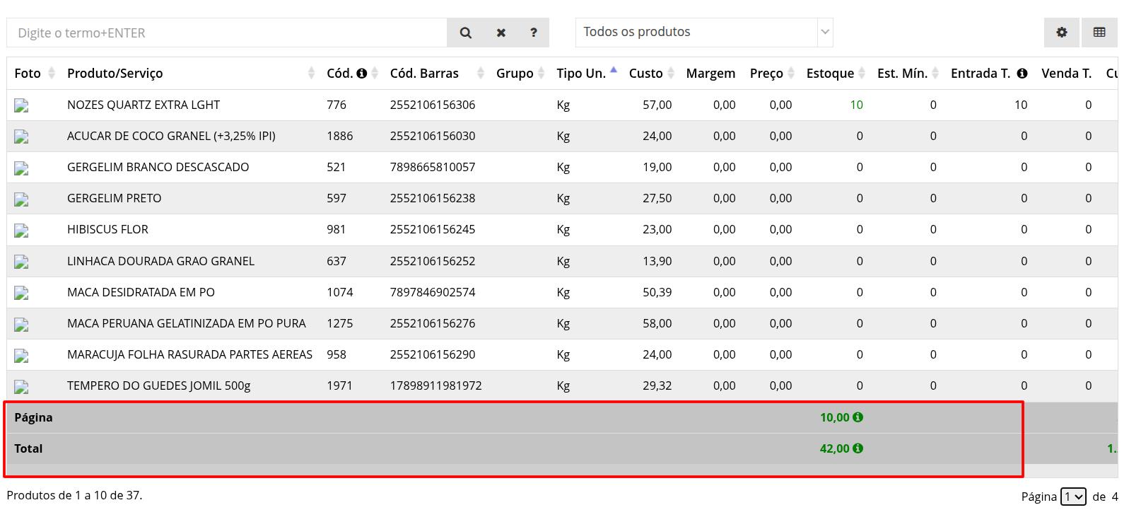 Quero saber aonde vejo o que tenho estoque positivo o total